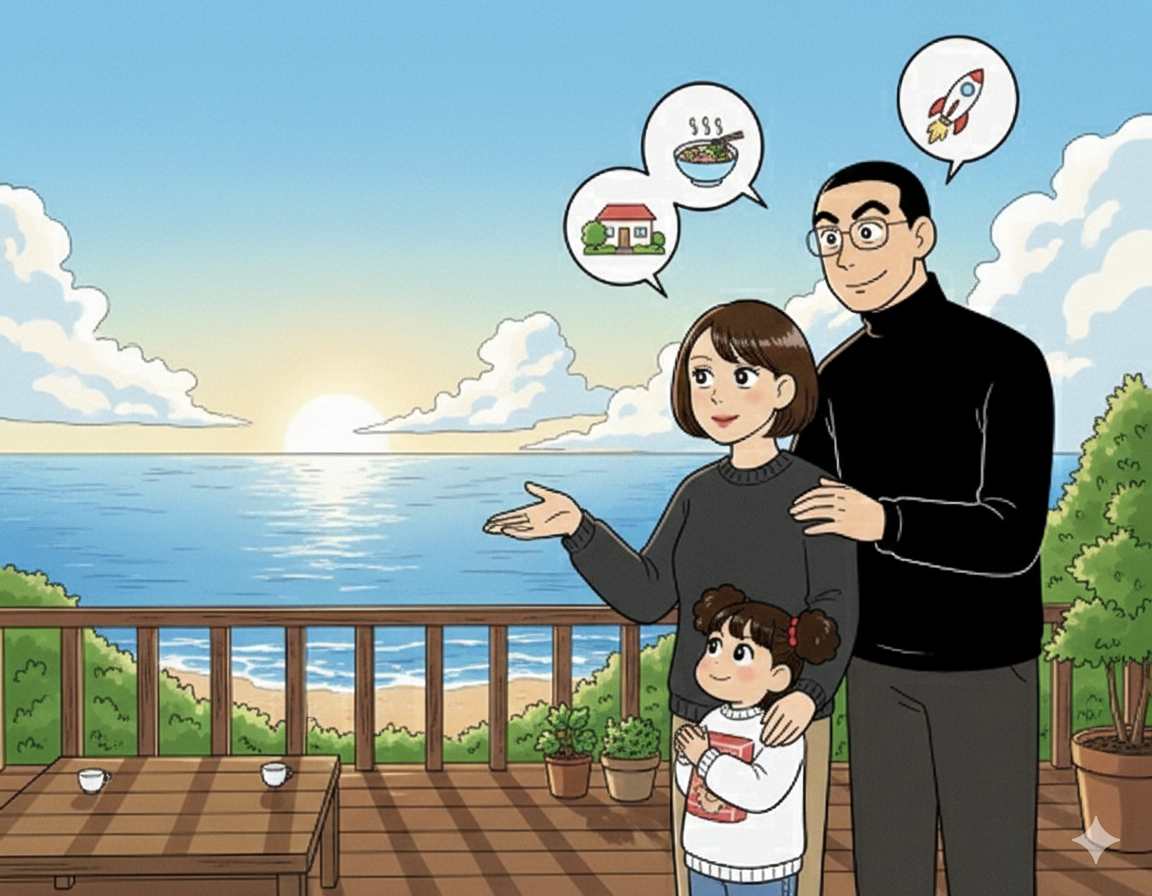 • 理想の住まい: 2027年末、葉山に家を建てて新しい生活をスタートする