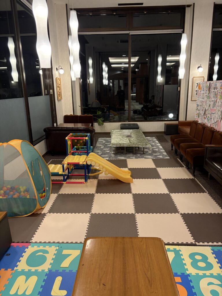 滑り台や絵本、おもちゃが揃っており、チェックイン後や夕食後のちょっとした隙間時間に娘を遊ばせることができました。スタッフの方々も子供に優しく声をかけてくださり、老舗ならではの温かいおもてなしを感じました。