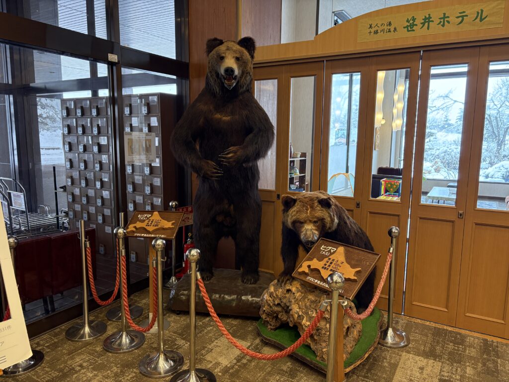 建物自体には歴史を感じる「古さ」もありますが、清掃が行き届いており、古き良き温泉宿の趣として心地よく過ごせました。ロビーでは雄雌2頭の大きなヒグマの剥製が迎えてくれ、娘も興味津々でした。