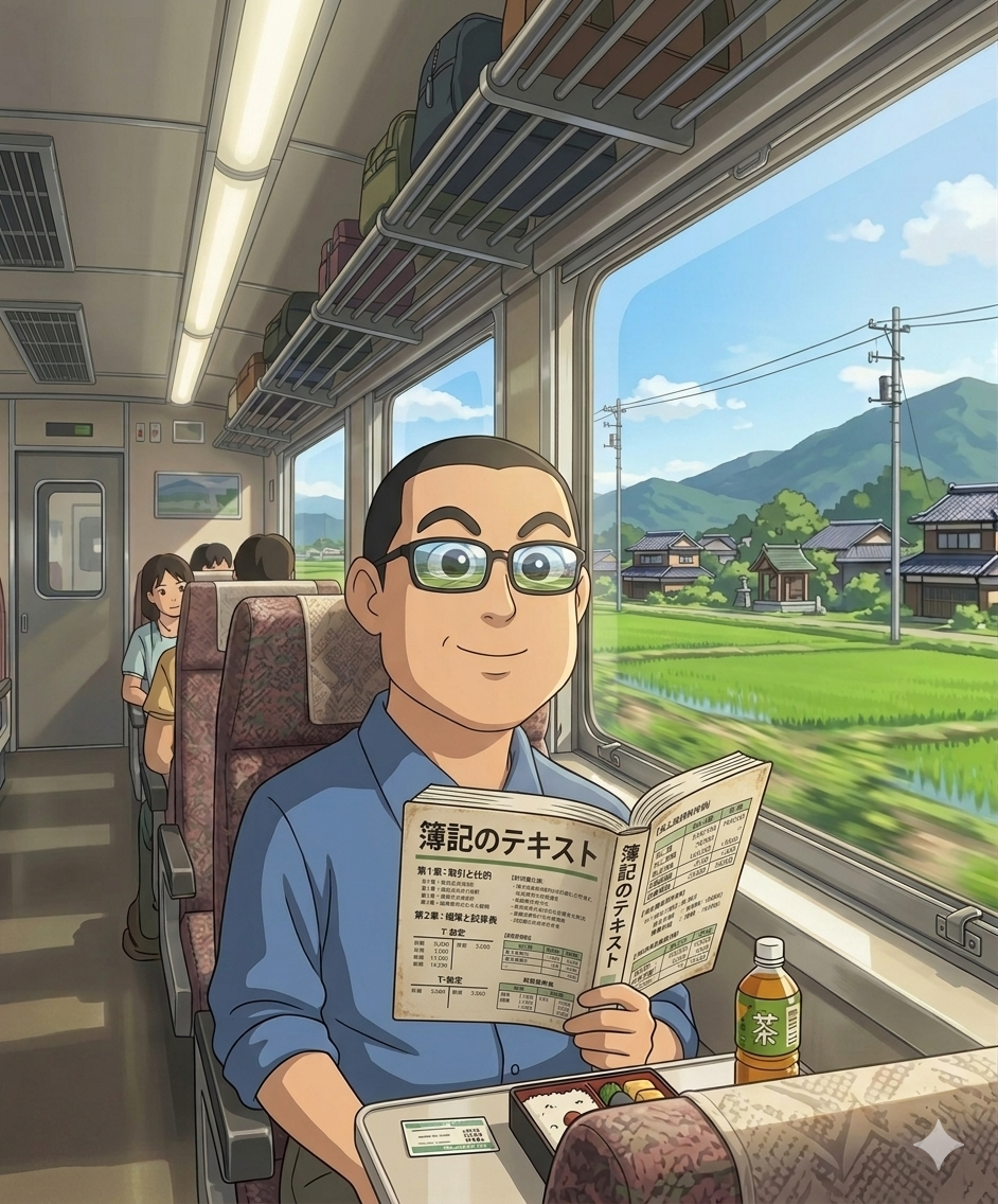 私も今回、実は週末に簿記の受験が控えているので、この往復6時間を有効活用して勉強に充てることができました。まとまった時間を取れるのは、鉄道旅の大きな強みです。